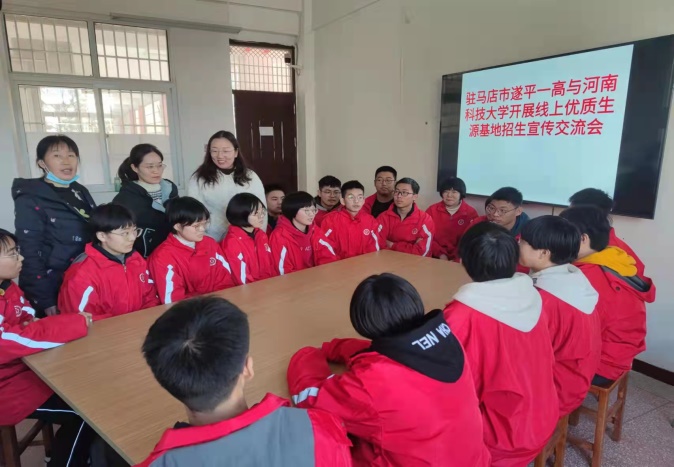 党委副书记马东辉、2019级辅导员胡雅雯及本科生代表与驻马店遂平一高和周口太康一高开展了两场线上生源基地维护和招生宣传工作交流会 。