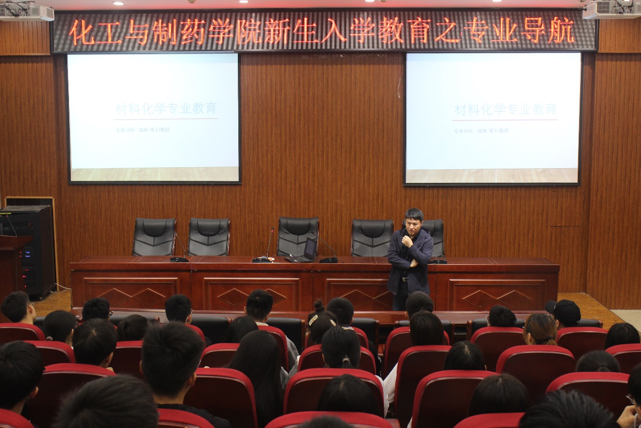 在工科五112报告厅举行了新生入学教育之专业导航。本次专业导航由材化专业学业导师陆昶老师主讲。