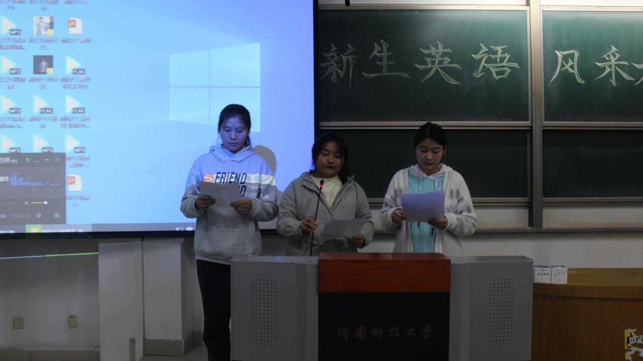 英语风采大赛于七点拉开帷幕。首先,主持人介绍本次比赛的评委及规则,随后26组同学分别通过演讲、唱歌、朗诵等形式展现出了英语的魅力,最后根据评委的打分情况进行排名。各参赛人员都认真对待本次比赛,以英语的形式来表达各式各样的主题:如梦想、我对大学的认识、红星照耀中国等,充分体现了参赛队员们灵活应用英语的能力。