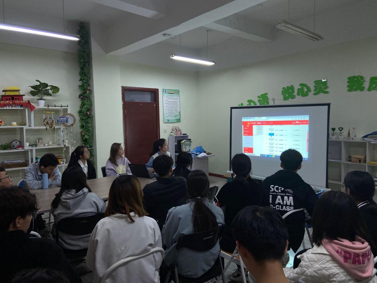 在工科5-237教室开展讲解智慧团建操作方法的相关会议,会议由化工191团支书郭筱涵主持,21级各班部分团学干部及院团委相关人员参加会议。
