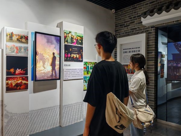 (实践队成员在阅读花鼓坐唱文化介绍)